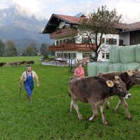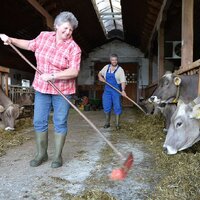 Bei uns sieht es so aus, das alle Familienmitglieder sich einsetzen für Tiere, Wald und Flur und besonders auch für die Alm. 19 Hektar Wiese Eigengrund und Pachtfelder, sowie ca. 5 ha Bergwald werden im Nebenerwerb bewirtschaftet.