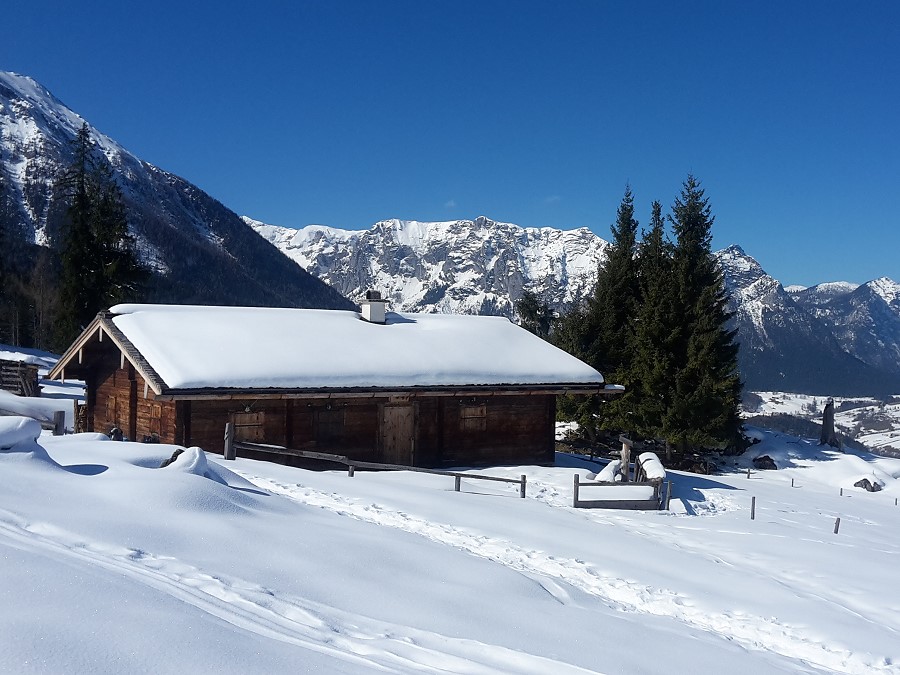 Genießen Sie auf unserer Alm den wunderbaren Rundblick in die Berchtesgadener Berge.